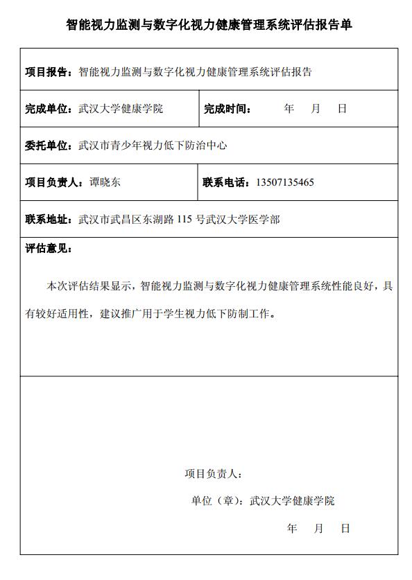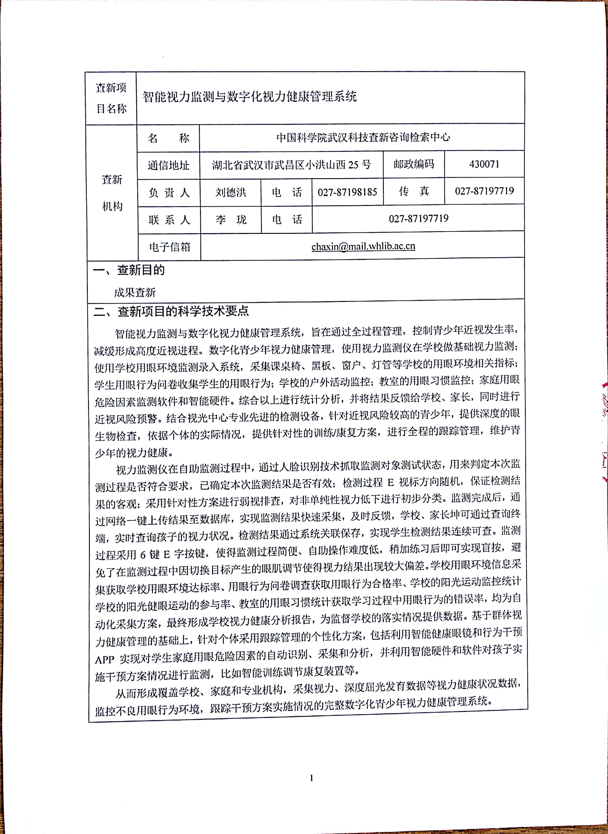 在學(xué)生近視防控公共服務(wù)領(lǐng)域,近三年來為武漢市學(xué)生視力健康管理服務(wù)定向研究研發(fā)了自助式和無人化視力屈光監(jiān)測系統(tǒng),實(shí)現(xiàn)數(shù)字化健康教育、風(fēng)險(xiǎn)監(jiān)測、大數(shù)據(jù)采集、分析、建檔、動(dòng)態(tài)跟蹤管理,為全過程管理青少年視力健康提供客觀、高效的服務(wù)。2018年提供武漢市1000所學(xué)校近百萬學(xué)生視力篩查建檔與數(shù)字化分析管理使用,設(shè)備安全穩(wěn)定、監(jiān)測數(shù)據(jù)客觀精準(zhǔn)、減少人員投入,提高工作效率,在全國率先完成全市學(xué)生近視的摸底監(jiān)測工作,為全市統(tǒng)一精準(zhǔn)快速建立學(xué)生視力健康檔案發(fā)揮了重要作用,得到各區(qū)校及監(jiān)測人員的的高度肯定。 希望能站在大健康角度更好地解決青少年視力不良社會(huì)問題。